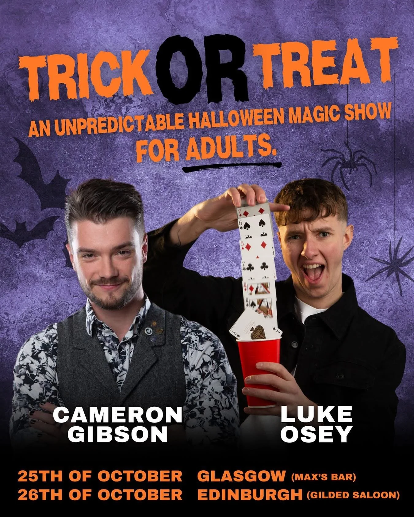 This is the one Iām most excited about. Co-created by me (Cameron Gibson) and Luke Osey (2/3rd of the āinternational phenomenonā show āInsane Magicā), this magic show is dark, spontaneous, cheeky, and absolutely not for kids!